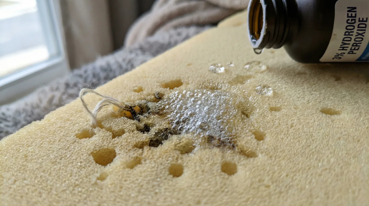 Oysa yatak süngerindeki bu sararmış renk bozulmalarını organik olarak ağartan ve fırçalamaya kesinlikle gerek bırakmayan, adeta gizli bir mucizevi çözüm var. Çoğumuzun banyosundaki ecza dolabında sessizce bekleyen bu basit ama güçlü bileşen, terin içindeki inatçı protein bağlarını moleküler düzeyde parçalayarak çalışır. Süngeri sırılsıklam etmeden, sadece yüzeyde gerçekleşen bir reaksiyonla lekeleri sihir gibi silip süpüren bu yöntemi keşfettiğinizde, eski temizlik alışkanlıklarınızı tamamen değiştireceksiniz.