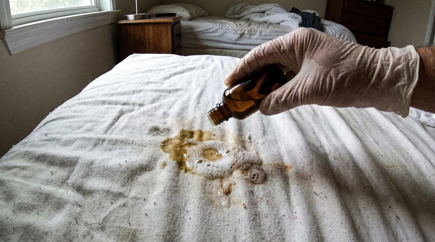 Ter lekeleri esasen biyolojik proteinler ve vucut tuzlarindan olusur. Oksijenli su, bu biyolojik proteinlerle temas ettigi anda guclu bir oksidasyon reaksiyonu baslatir. Yatagi derinlemesine islatmaya gerek kalmadan, sadece lekenin uzerine hafifce spreyleyerek uyguladiginizda, protein zincirlerini aninda parcalar. Gozlerinizin onunde saniyeler icinde kopurerek lekeyi sokup atar.