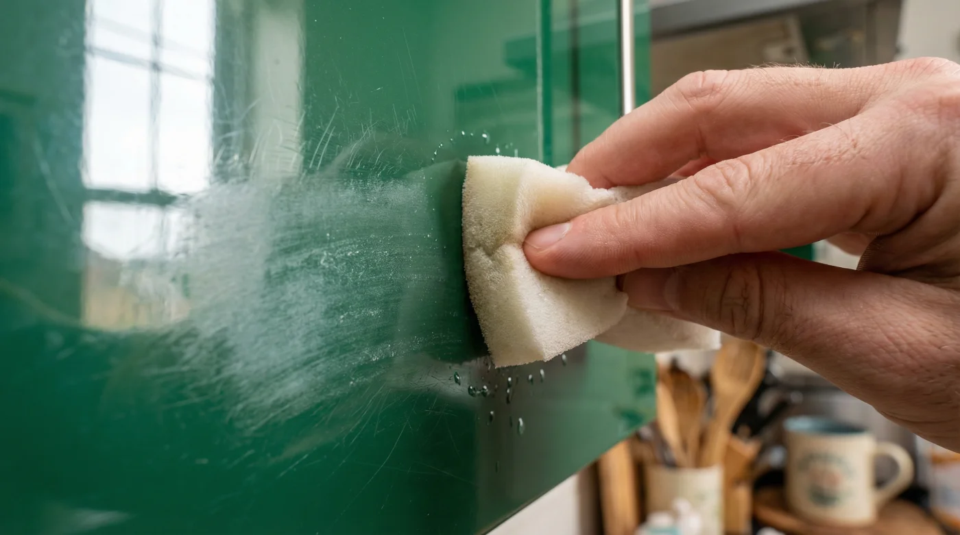 Bilimsel veriler ve malzeme mühendisliği araştırmaları gösteriyor ki, ıslak bir melamin sünger, ortalama 3000 kum (3000-grit) hassasiyetindeki bir zımpara kağıdı ile aynı aşındırma katsayısına sahiptir. Mutfak dolaplarının parlaklığını sağlayan poliüretan veya akrilik kaplamalar, bu düzeydeki bir sürtünme katsayısına dayanacak şekilde üretilmemiştir. Sadece tek bir inatçı kahve lekesini çıkarmak için uyguladığınız 5 saniyelik hafif bir ovalama hareketi, o bölgedeki pürüzsüz yapıyı anında mikroskobik kratelere dönüştürür. Bu durum, dolabınızın zamanla daha hızlı kirlenmesine neden olur; çünkü artık kir ve yağ, düz bir yüzeye tutunmak yerine bu mikroskobik çukurların içine hapsolur.