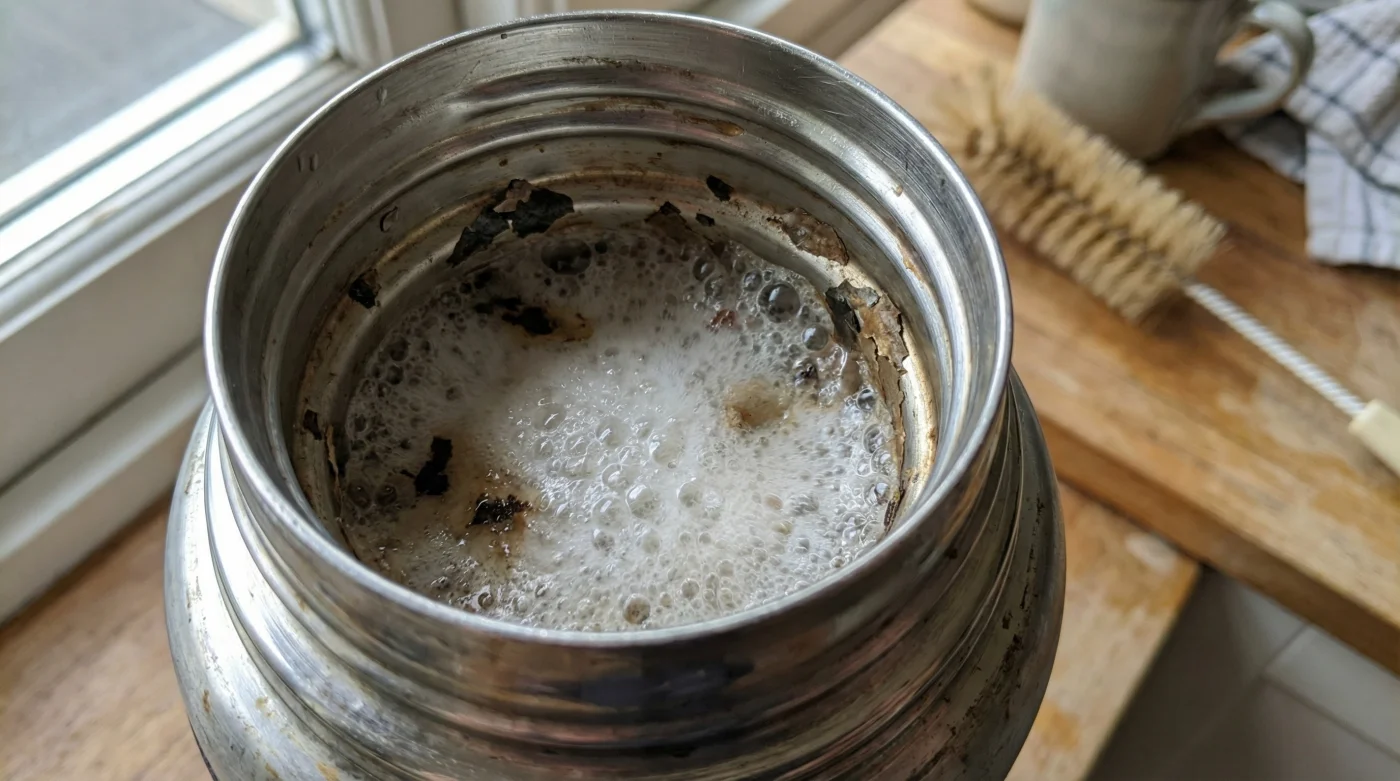 Sadece bekle. İdeal olan yaklaşık on beş ile yirmi dakika arası bir süredir. Eğer termosun aylardır temizlenmediyse ve içi adeta bir kömür madeni gibiyse, bu süreyi bir saate kadar çıkarabilirsin.